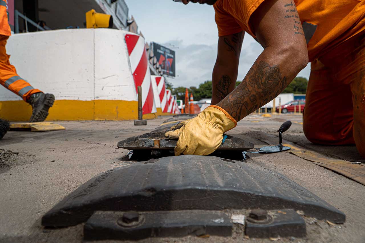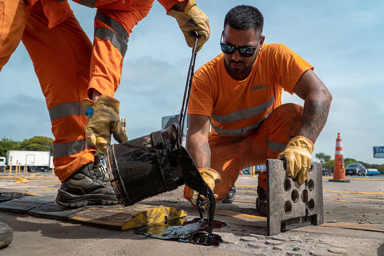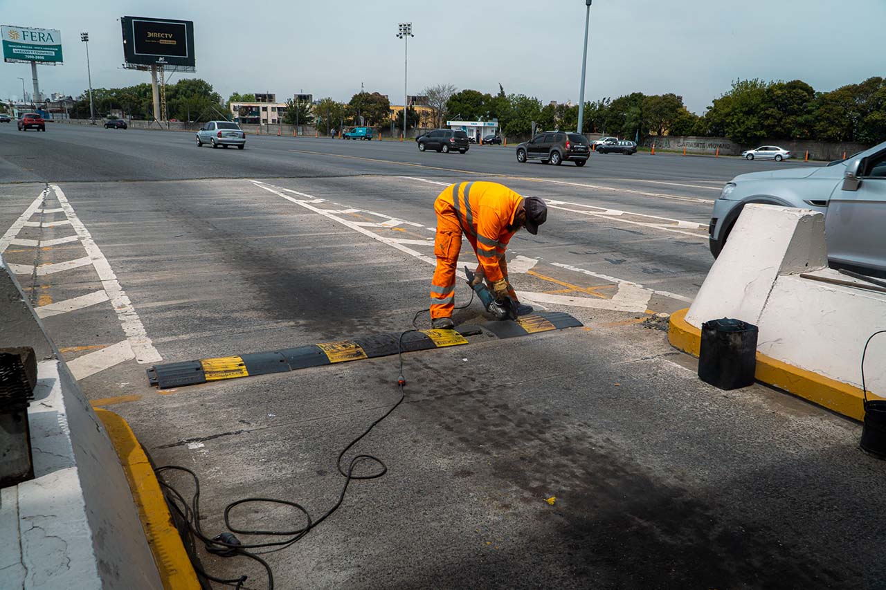 Allí, en todas las vías en sentido descendente ya se colocaron los nuevos limitadores que se fijan al piso con brocas y también se les agrega asfalto para mayor durabilidad de los mismos. Además, los trabajadores de AUBASA ya comenzaron a realizar el mismo trabajo en sentido ascendente para completar la tarea en ambos sentidos de circulación.
