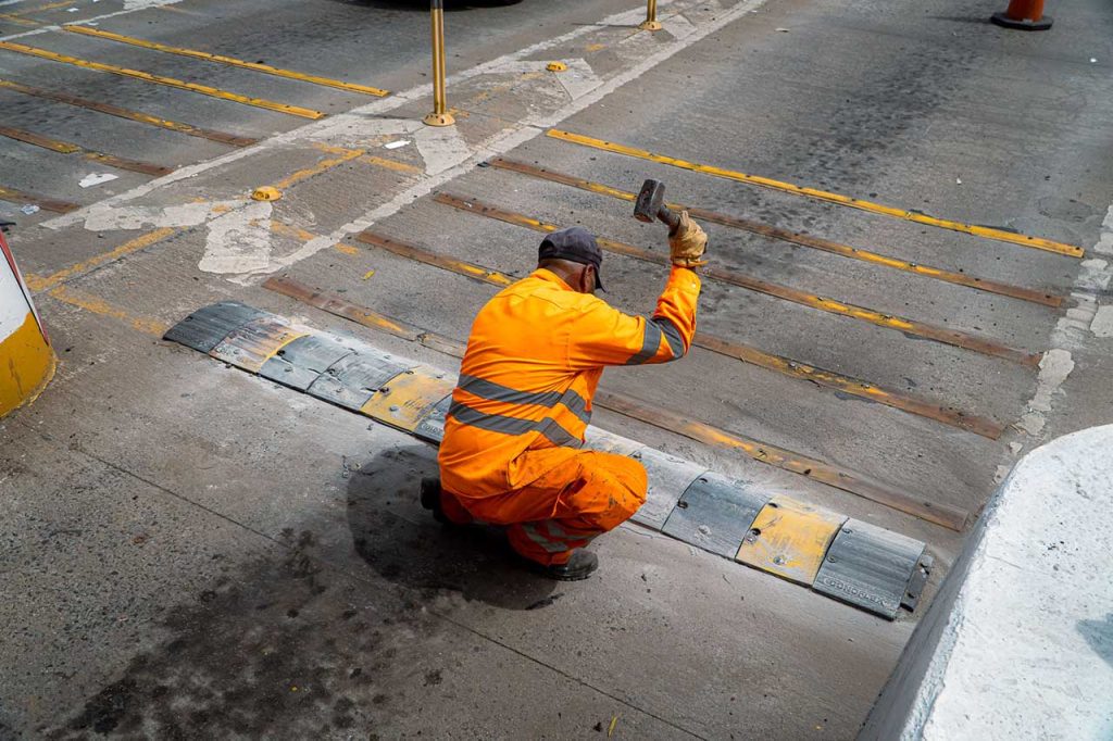AUBASA continúa con los trabajos de reparación y mantenimiento en distintos tramos de todo el corredor como también en las estaciones de peajes. La empresa Provincial informó que se están cambiando los reductores de velocidad en el peaje de Dock Sud de la Autopista Buenos Aires La Plata.