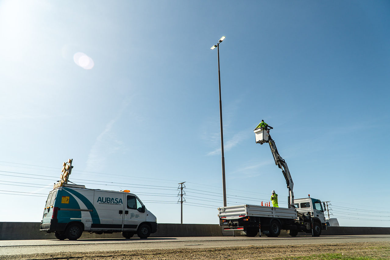 Autopistas Buenos Aires S.A comenzó con el recambio de 1.500 luminarias LED que están siendo colocadas en la autopista Buenos Aires La Plata. Se trabaja a diario en toda la traza para culminar el trabajo en 100 días.