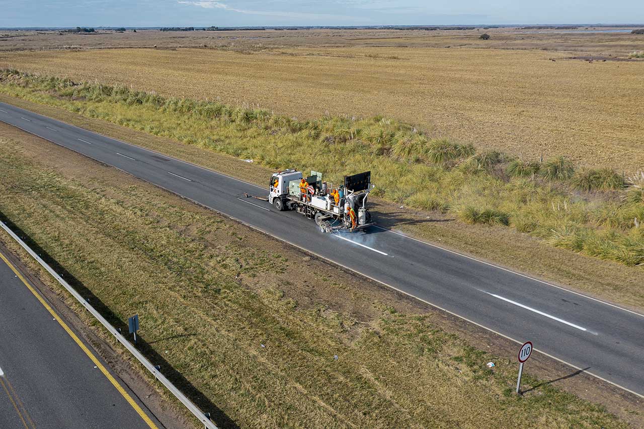 En Ruta 11 las tareas se realizan en los tramos: Esquina Crotto – General Conesa, 25 kms en ambas calzadas, y General Conesa-San Clemente, 58km, en calzada descendente.