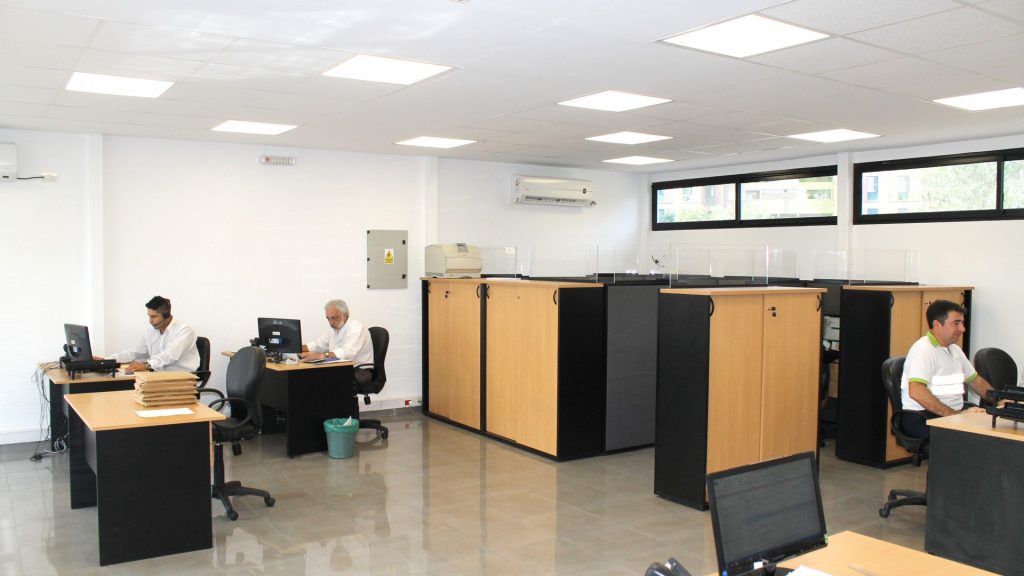 La disposición de las oficinas está distribuida en islas dentro de un espacio común, favoreciendo a la interacción entre los sectores, a la comunicación interna y la rapidez a la hora de resolver los problemas.