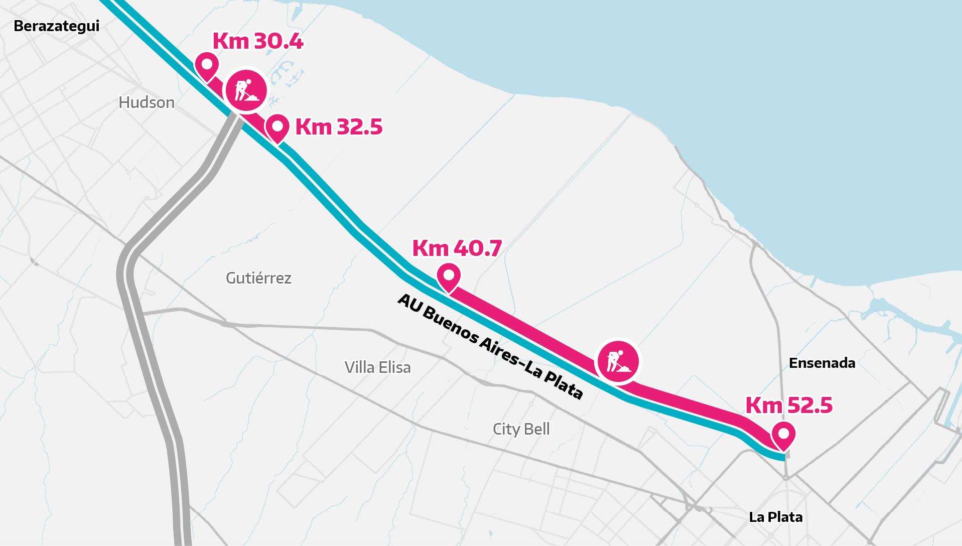Los trabajos abarcan el bacheo profundo, la repavimentación con mezcla asfáltica en caliente, y demarcación horizontal de los tramos comprendidos entre el km 50,9 (La Plata), hasta el km 40,80 (Villa Elisa), y entre el km 32,5 y 30,3 (Hudson), sentido a Ciudad de Buenos Aires.