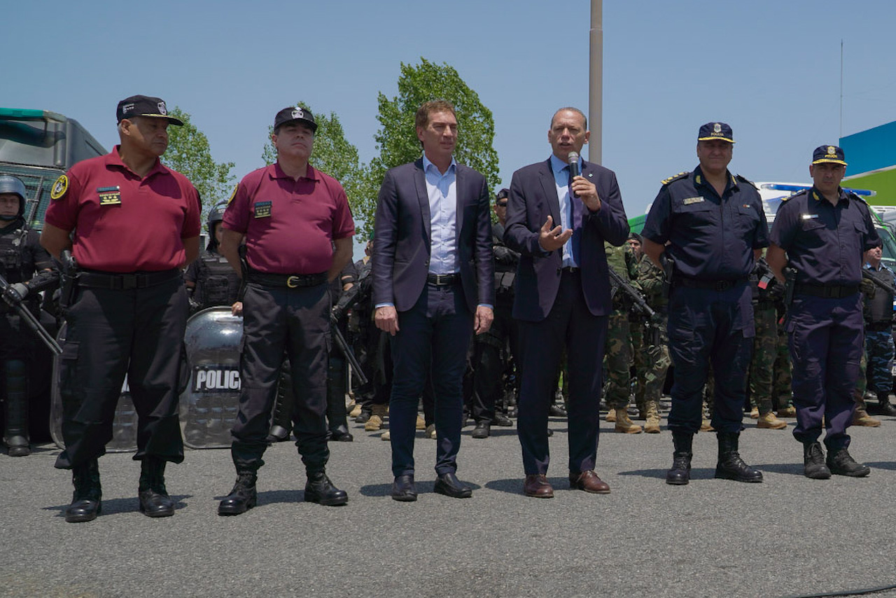 Por su parte, Berni siguió la misma línea discursiva en pos de la colaboración entre fuerzas, el “intercambio de información” y habló de policías de todas las jurisdicciones en forma “coordinada” en lo que llamó el “esfuerzo de policía nacional”.