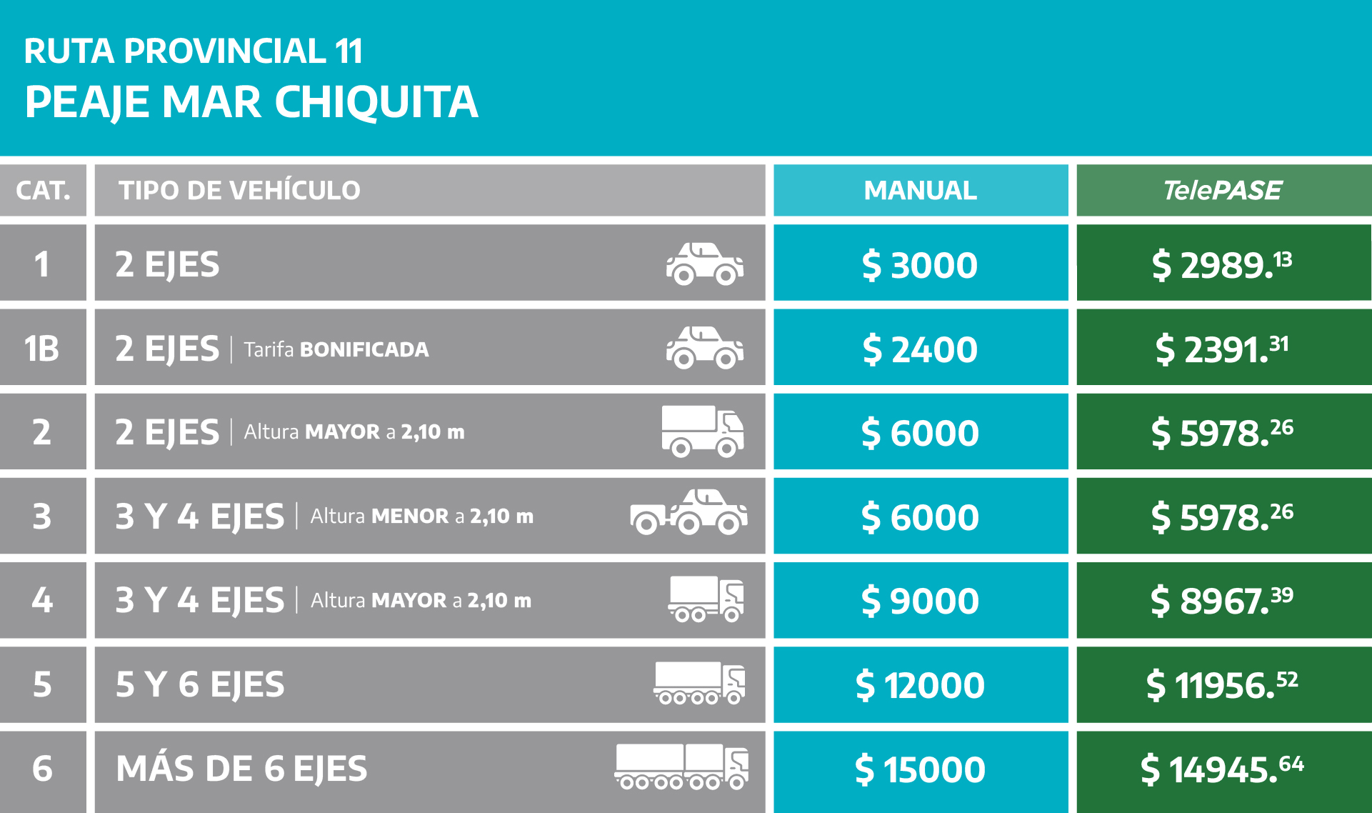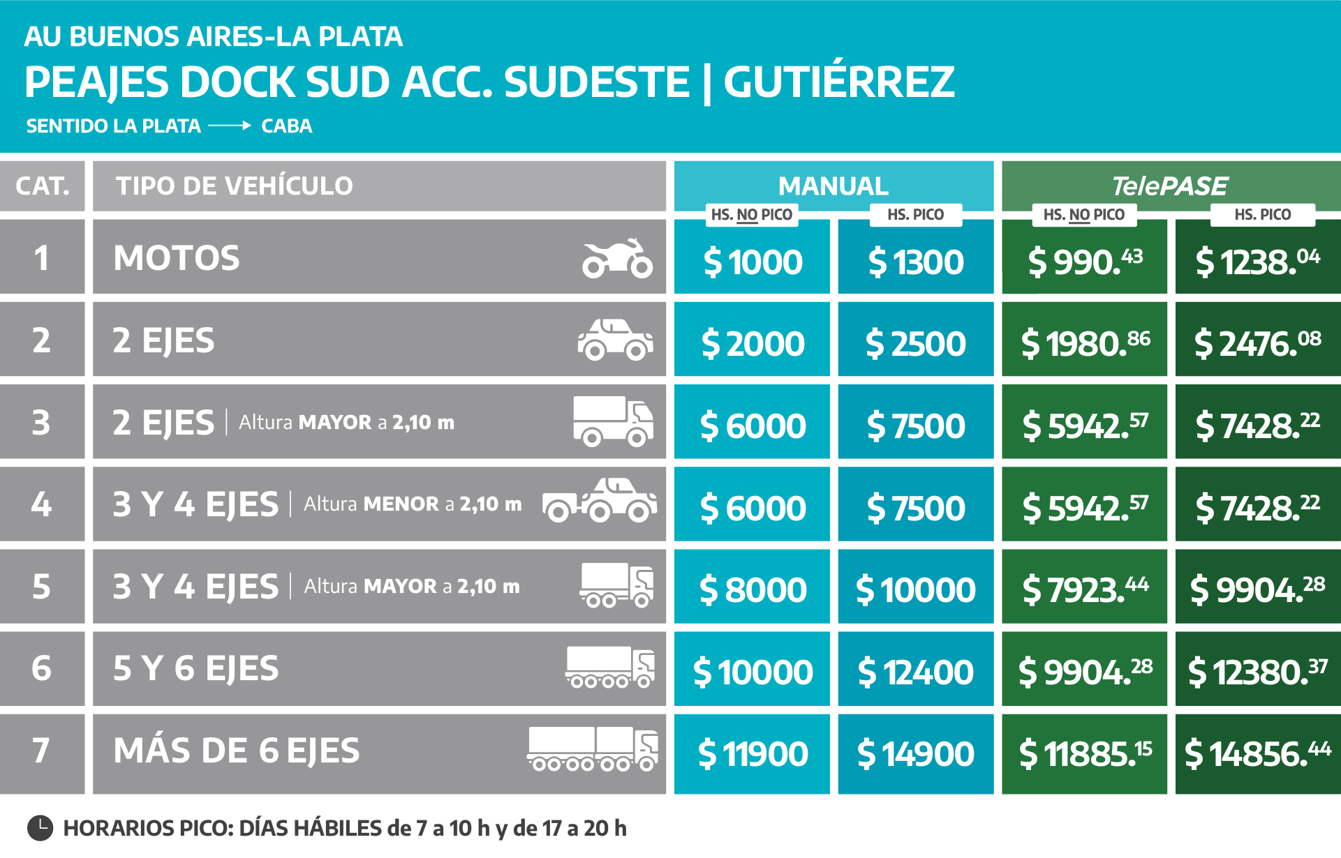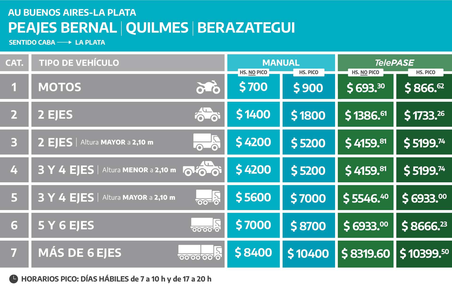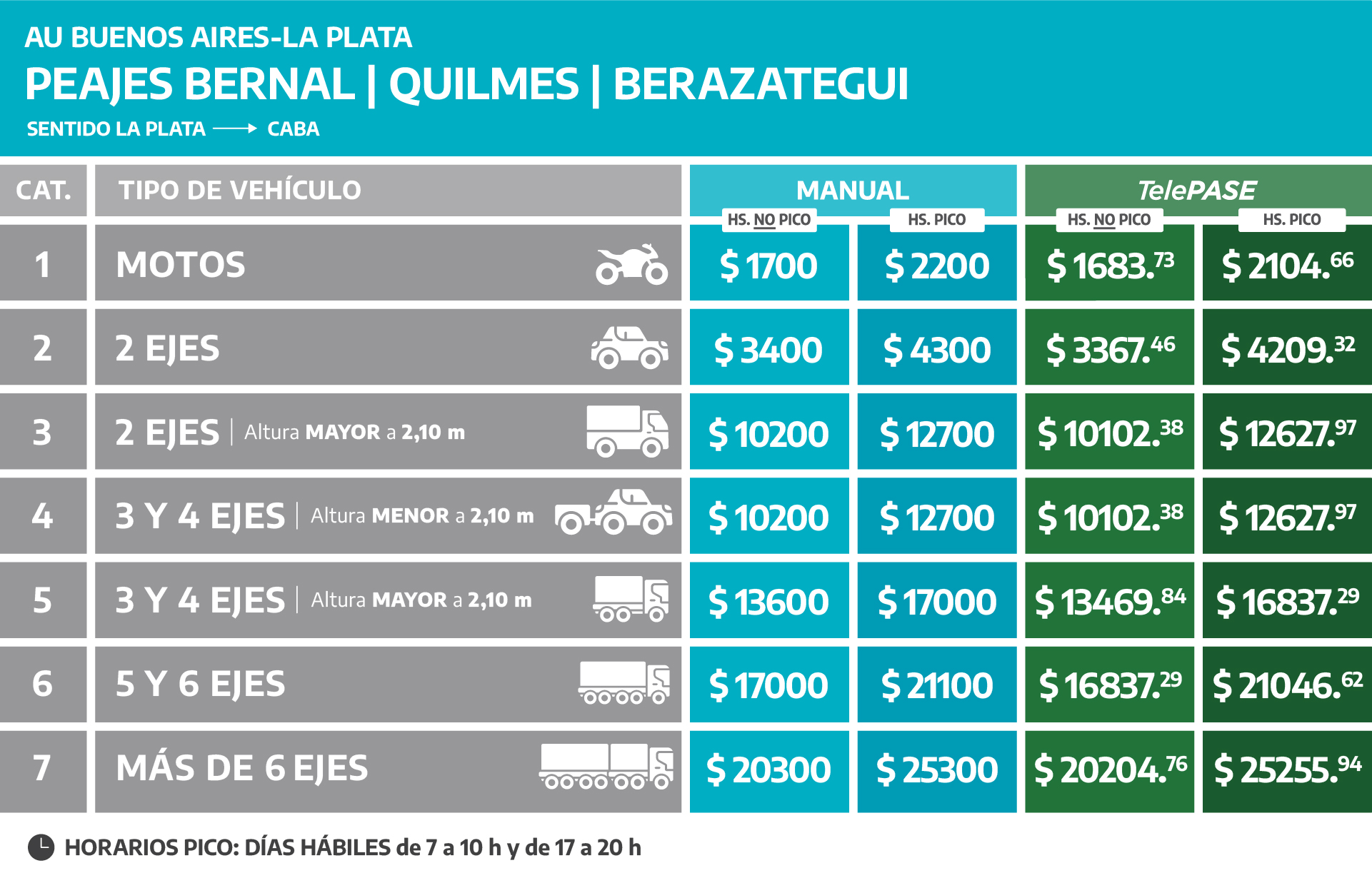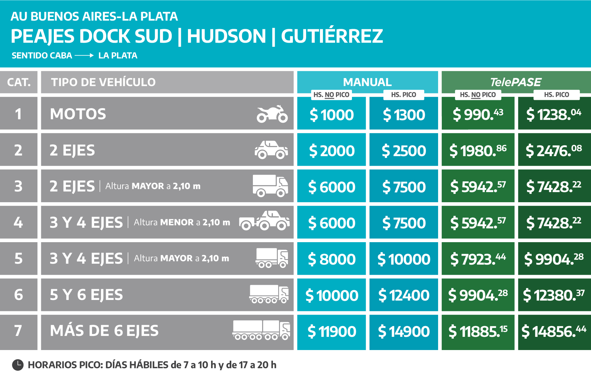 (Válido para todas las estaciones de peaje de la Autopista Buenos Aires – La Plata)