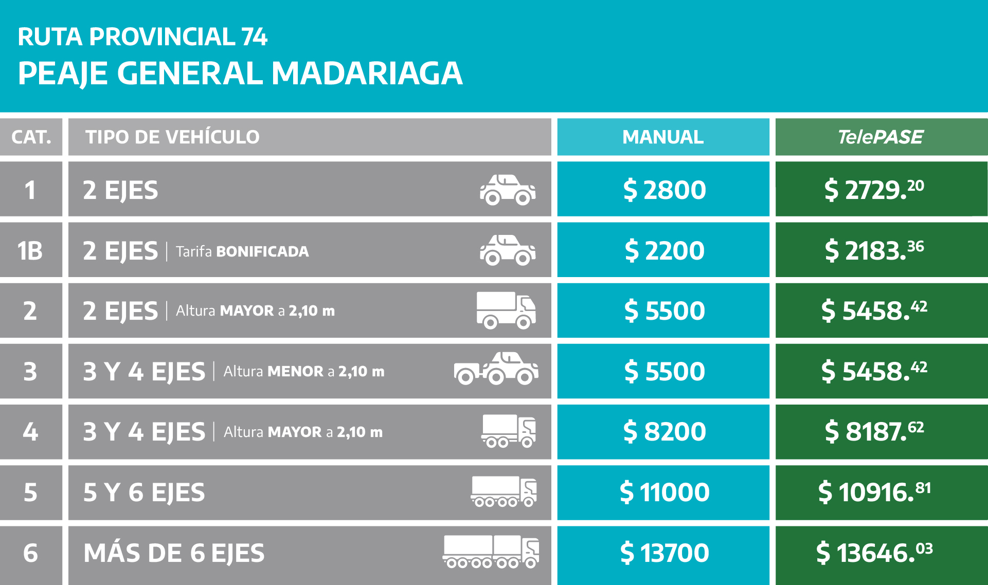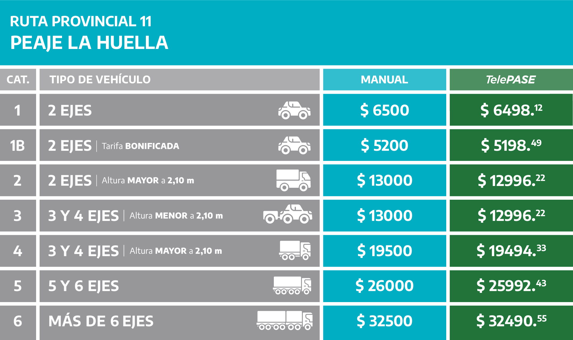 (Válido para las estaciones de peaje de Ruta 2, Ruta 11, y Ruta 74)