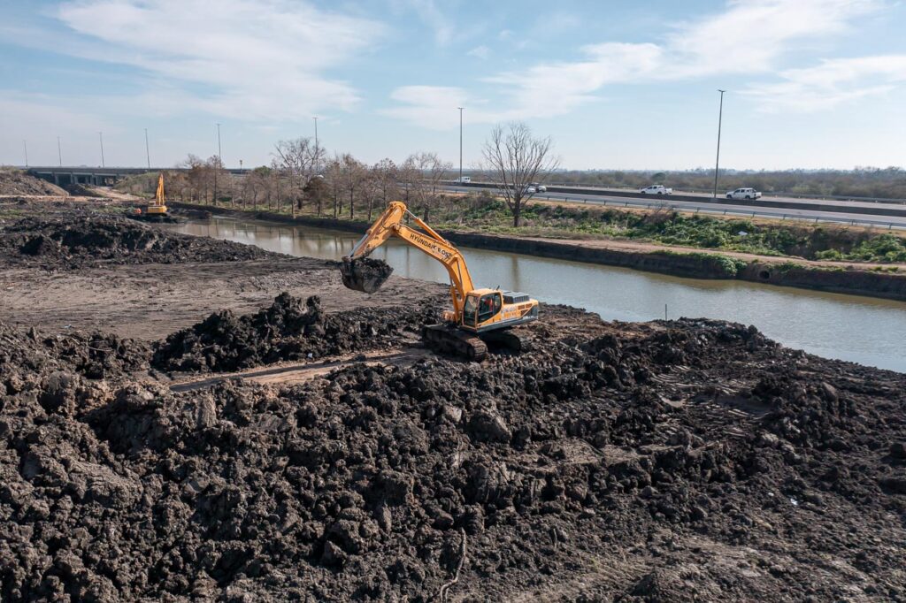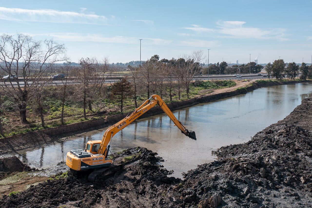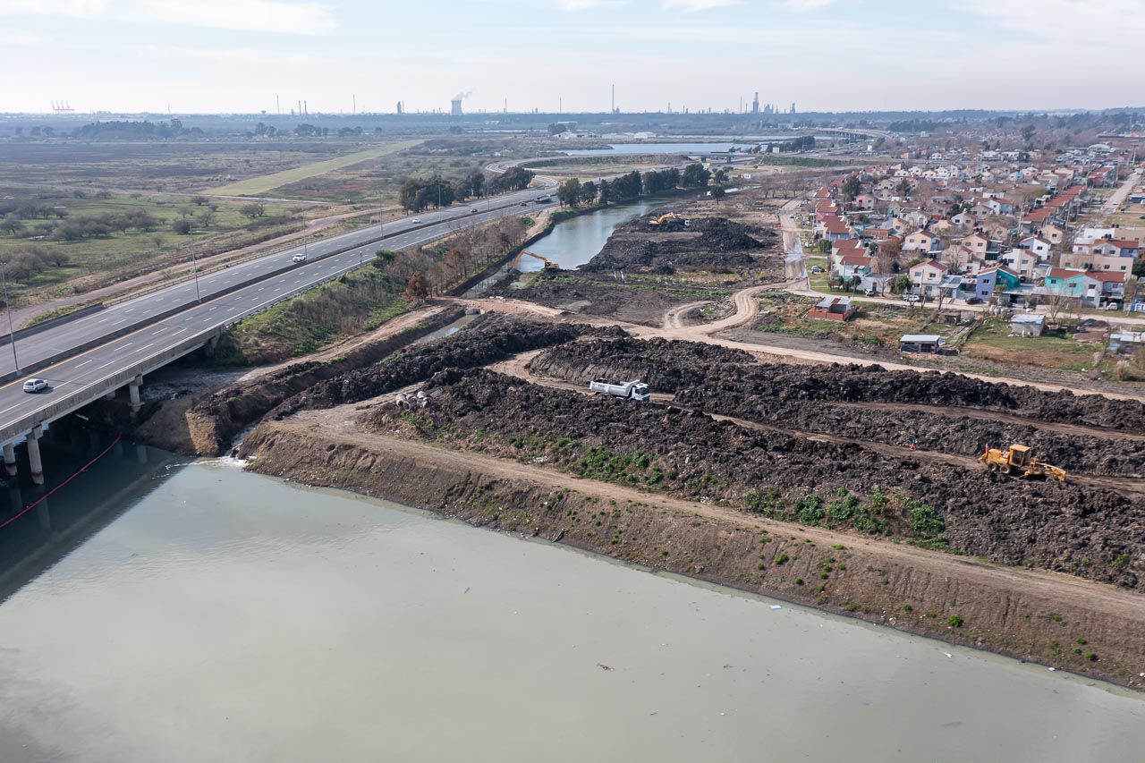 Si bien la obra maestra del distribuidor de la avenida 520 ya se encuentra finalizada, se continúan con los trabajos hídricos (en dos etapas) para evitar que por inclemencias climáticas se desborde el arroyo El Gato y afecte a los vecinos del barrio “El Mercadito” que se encuentra a metros de la bajada.