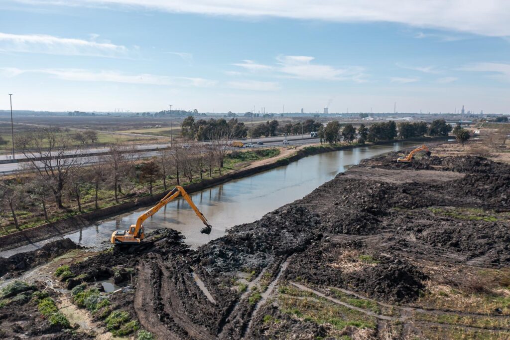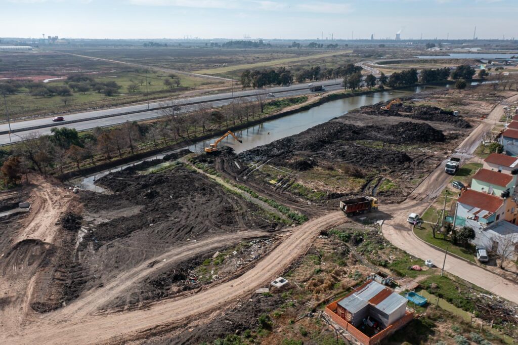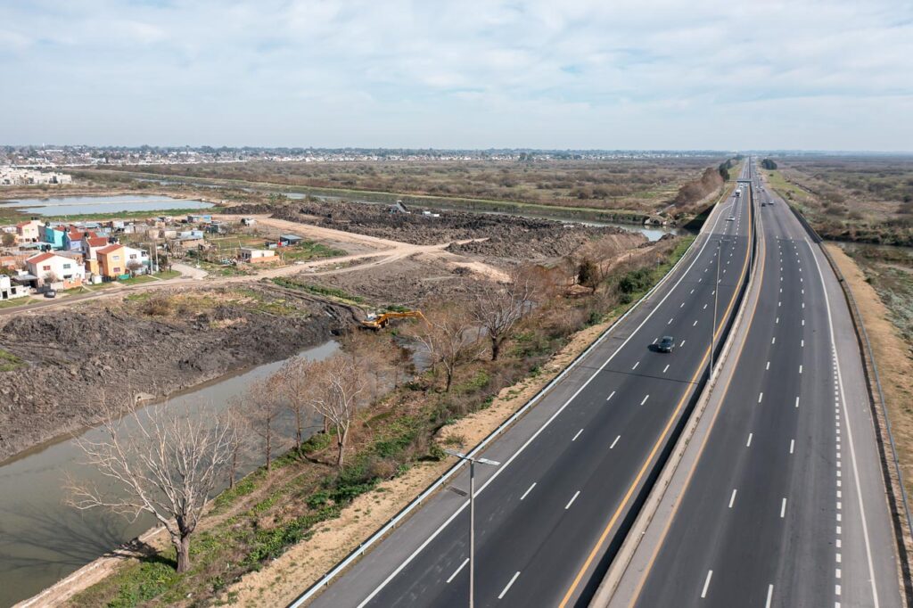 La obra, que cuenta con un 70 por ciento de avance, es financiada por Autopistas de Buenos Aires S.A (AUBASA) con el aval del área de Hidráulica del Ministerio de Infraestructura de la provincia de Buenos Aires.